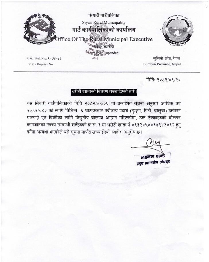 धरौटी खातको विवरण सच्चाइएको सम्बन्धी सूचना ।।