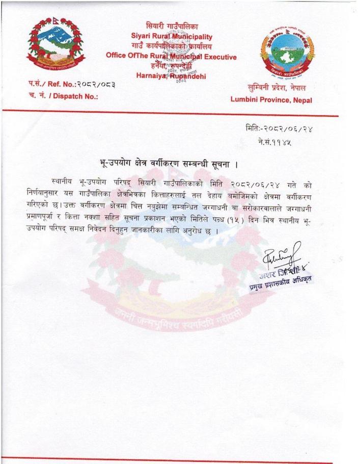भू उपयोग क्षेत्र वर्गीकरण सम्बन्धी सूचना ।।