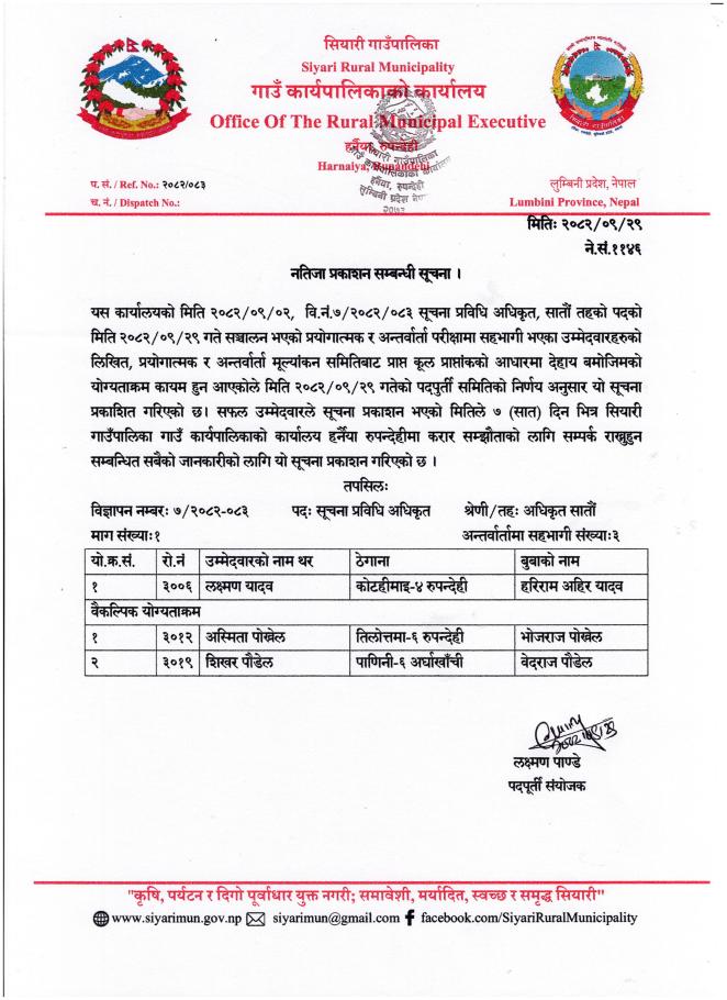 अन्तिम सूचना प्रविधि अधिकृतको अन्तिम नतिजा प्रकाशन सम्बन्धी सूचना ।।