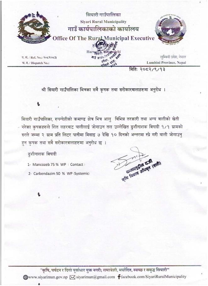 कृषक वर्गहरुमा अनुरोध तथा जानकारी सम्बन्धमा ।।