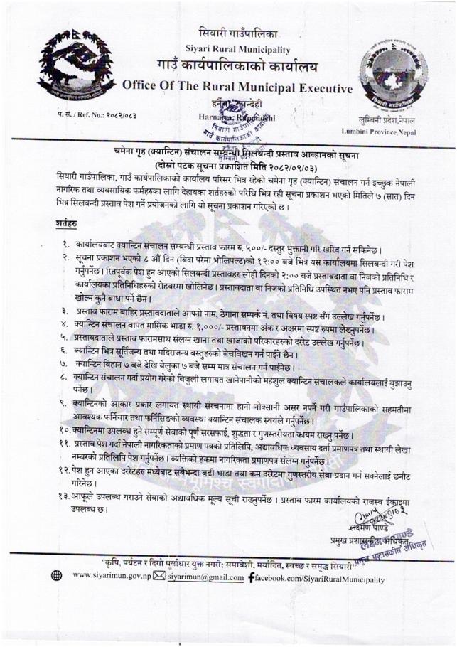चमेना गृह (क्यान्टीन) सञ्चालनको लागि प्रस्ताव आह्वान सम्बन्धी सूचना ।।