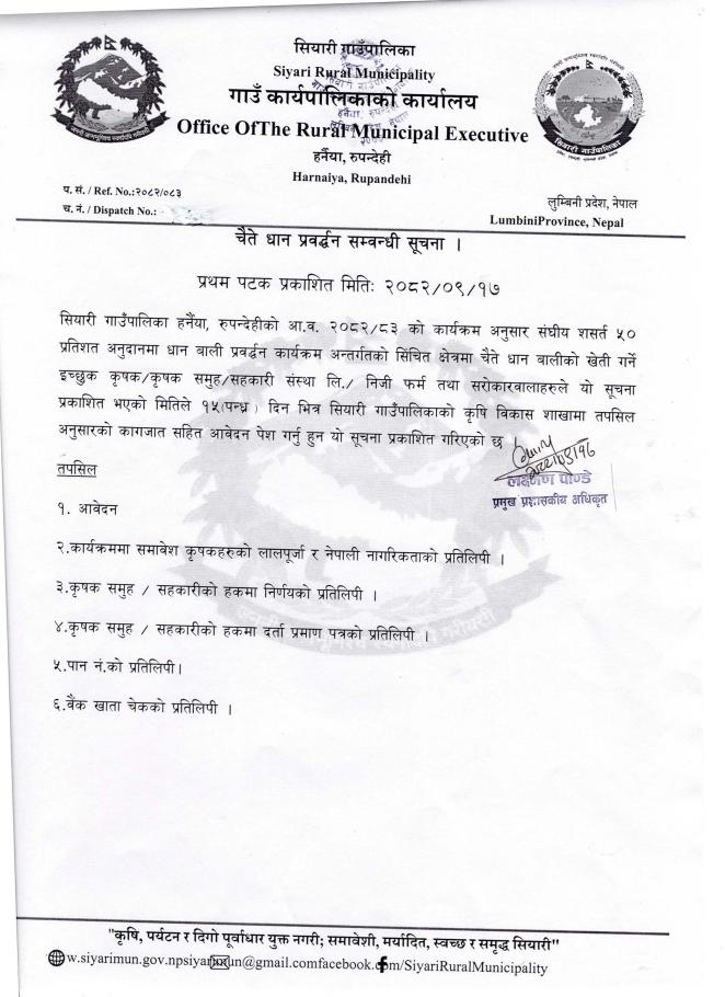 चैते धानवाली कार्यक्रम प्रबर्द्धन सम्बन्धी सूचना ।।