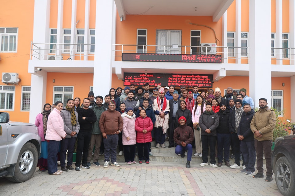सियारी गाउँपालिका आर्थिक बिकास शाखा प्रमुख श्री गणेश प्रसाद खनाल ज्यु र प्रशासन सहायक श्री शेषनारायण अर्याल ज्युलाई सम्मान, बधाई, शुभकामना तथा उत्तर उत्तर प्रगतिको कामना गर्दछौ।